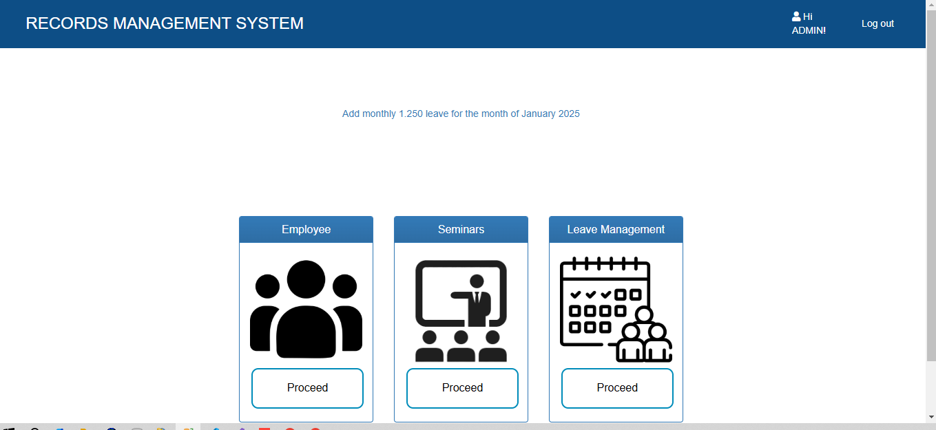 The Records Management System (RMS) is a web-based application designed to centralize, organize, and safeguard an organization's records, ensuring efficient data management and easy access to critical information. The system provides a seamless approach to storing, retrieving, and managing digital records while maintaining compliance with document management standards.